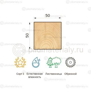 За 1 шт За м2 За м3247.5 ₽Брусок обрезной 50х50х3000 естественной влажности лиственница Сорт 1 -