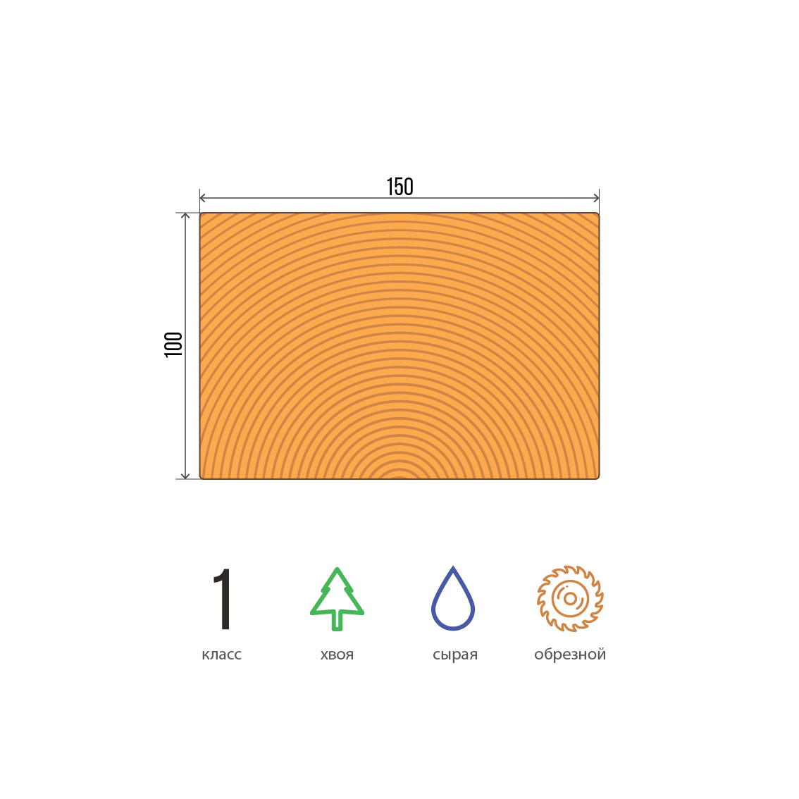 Брус обрезн. е/в хв. 100х150х6000 сорт 1 обработанный консервантом