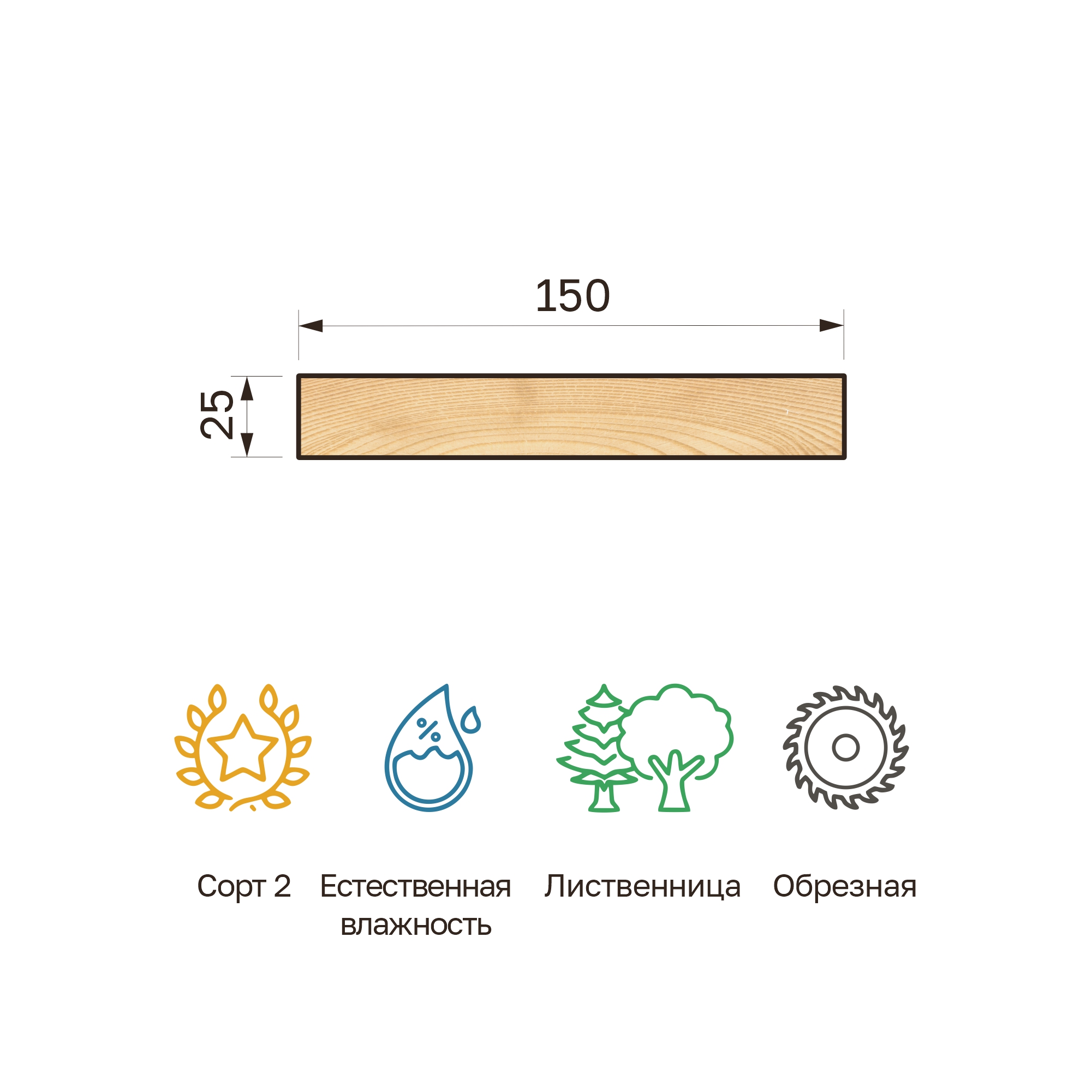 Доска обрезн. е/в листв. 25х150х3000 сорт 2 обработанная консервантом