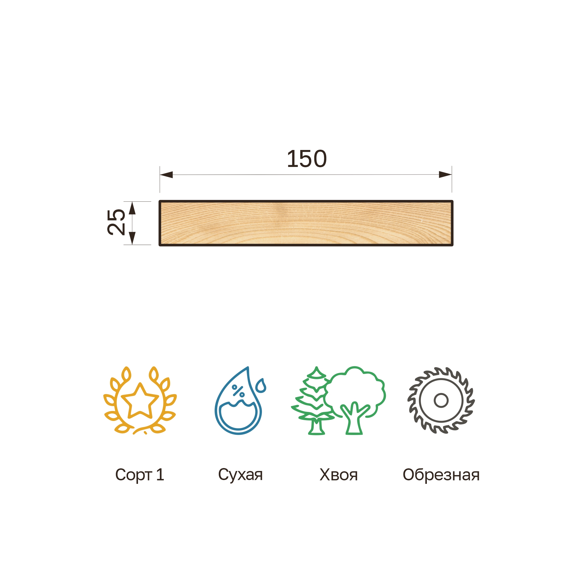 Доска обрезная 25х150х3000 сухая хвоя Сорт 1