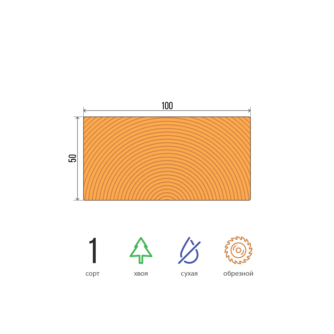 Доска обрезн. сух. хв. 50х100х6000 сорт 1 обработанная консервантом