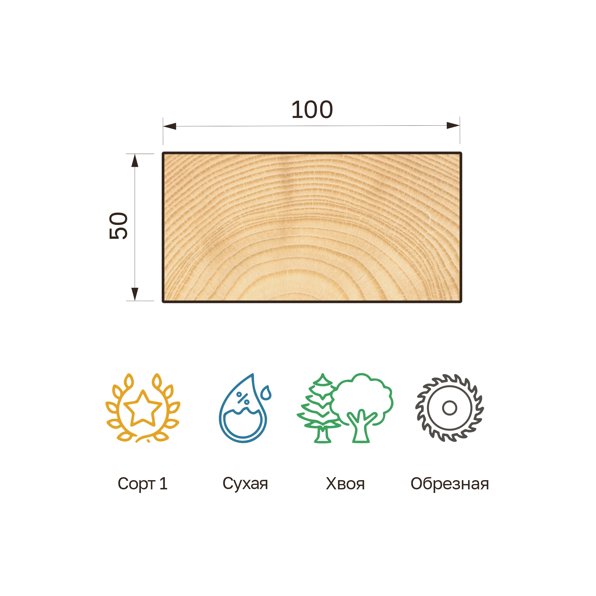 Доска обрезная 50х100х6000 сухая хвоя Сорт 1