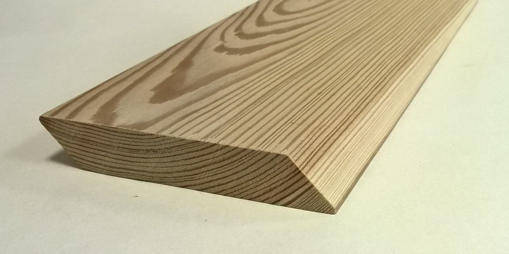 - Из лиственницы скошенный. Профилированные доски имеют закругленные фаски и срезанные под 45° края. Такая особенность позволяет монтировать доски внахлест, исключая появление сквозных щелей.