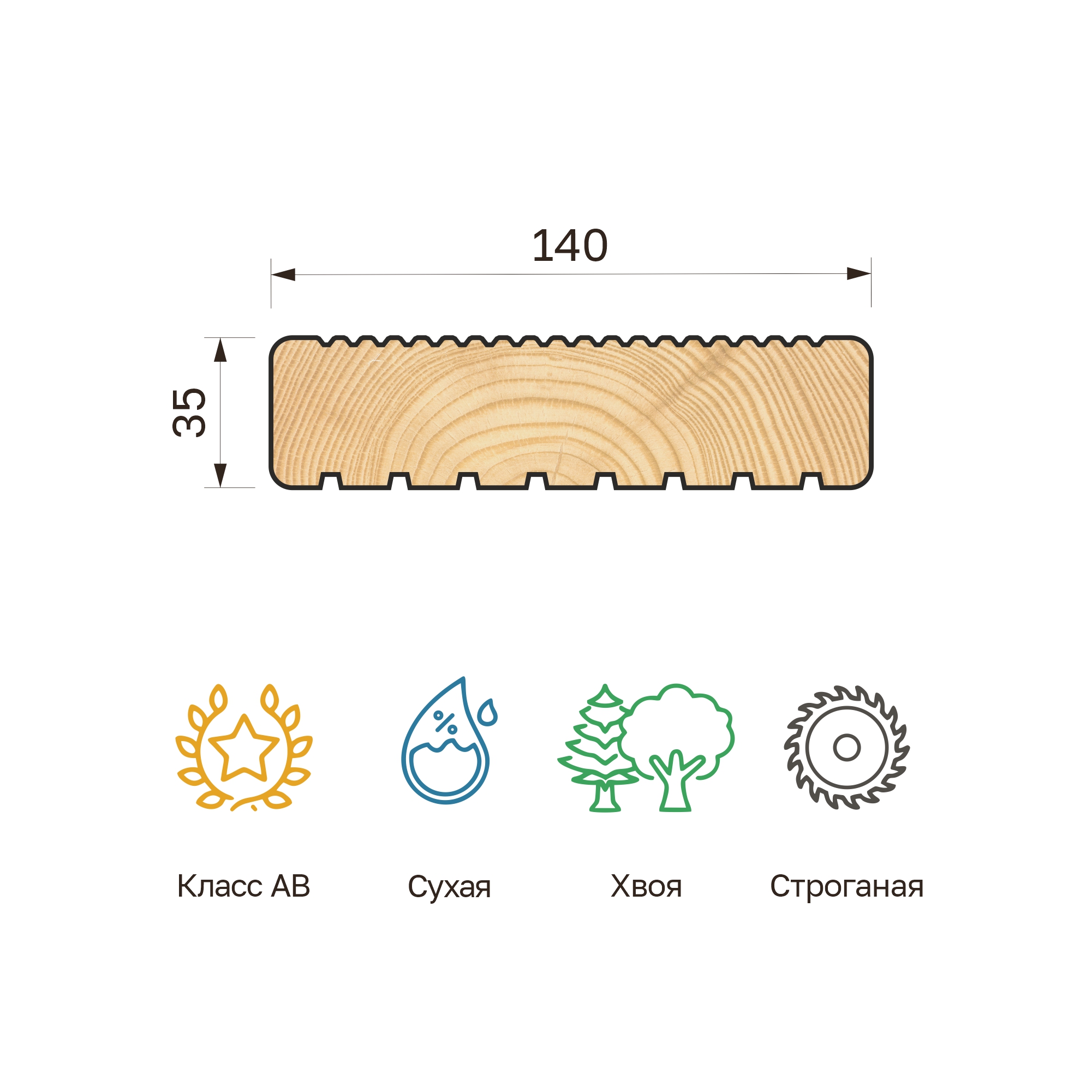 - Террасная доска 35х140х6000 хвоя класс АВ